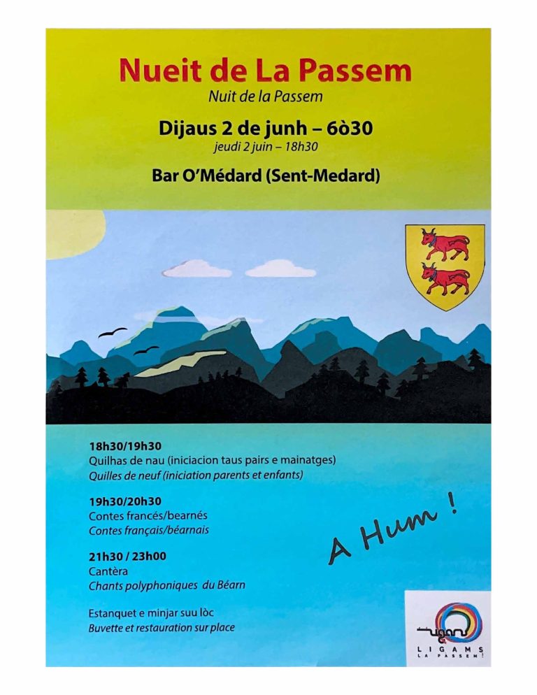 À l’occasion de la Nuit de La Passem, la nuit de la Passem, vous êtes conviés à venir en famille jeudi 2 juin à partir de 18h30 au Bar O’Médard. Estanquet e minera sur lòc. Buvette et restauration sur place.…